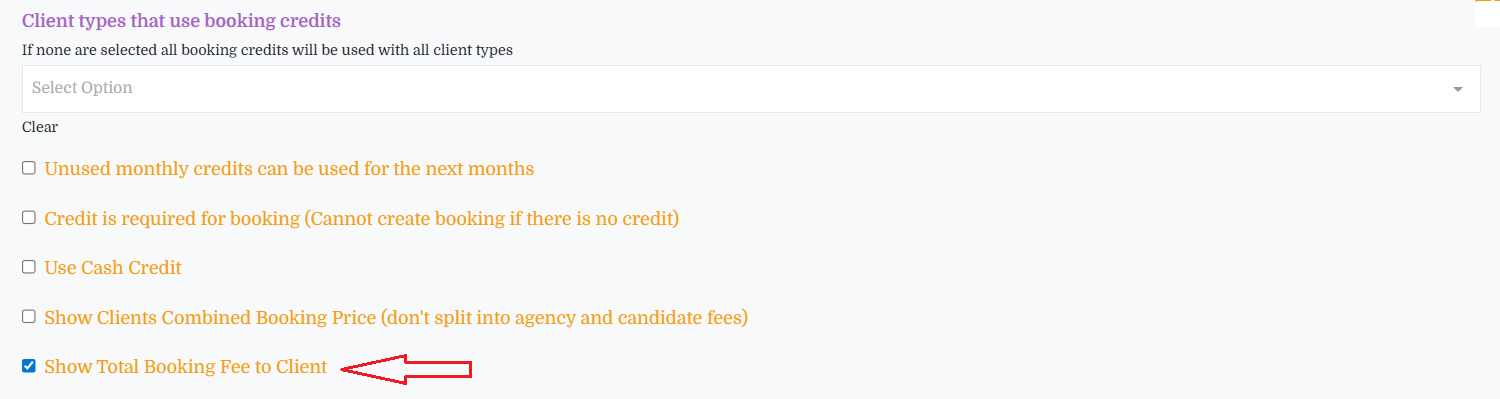 You can turn off or on to allow your client to see or hide the total booking fee on a shift job