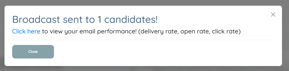 The broadcast for the selected job will be successfully sent to the selected candidates.
