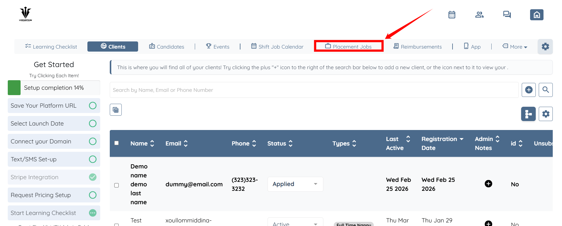 Step 1: Log in to your agent dashboard and click Placement Jobs in the navigation bar.