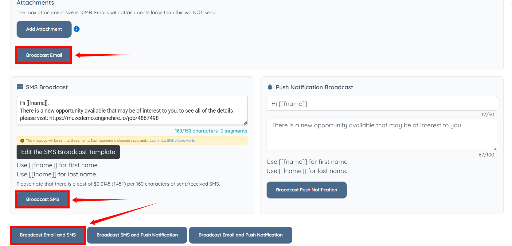 Step 5: Use any source to send the broadcast via email, SMS, or both, as needed.