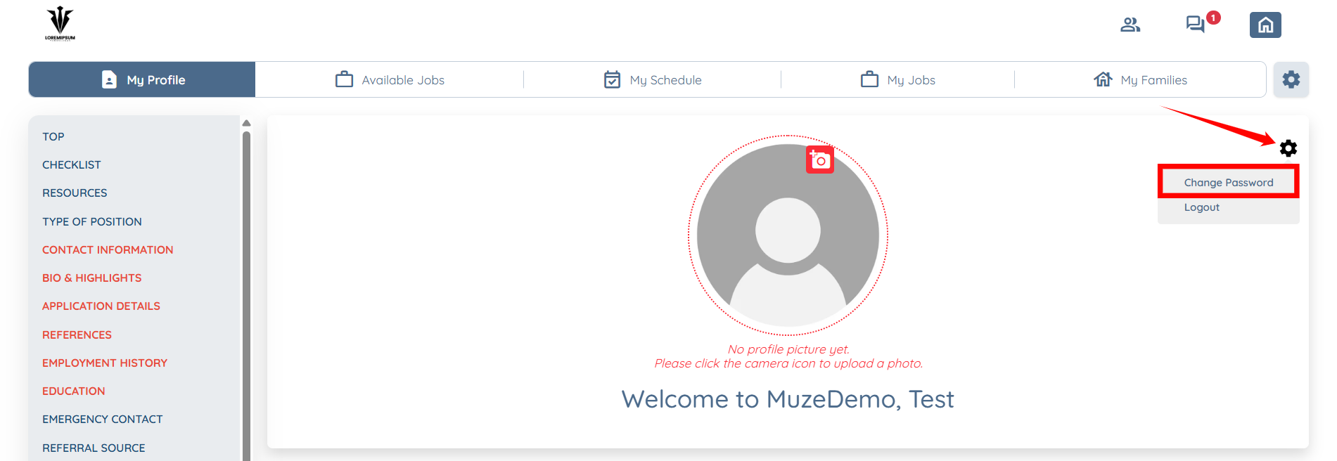 Alternatively, the Candidate or Client can click the gear icon in the top right-hand corner.