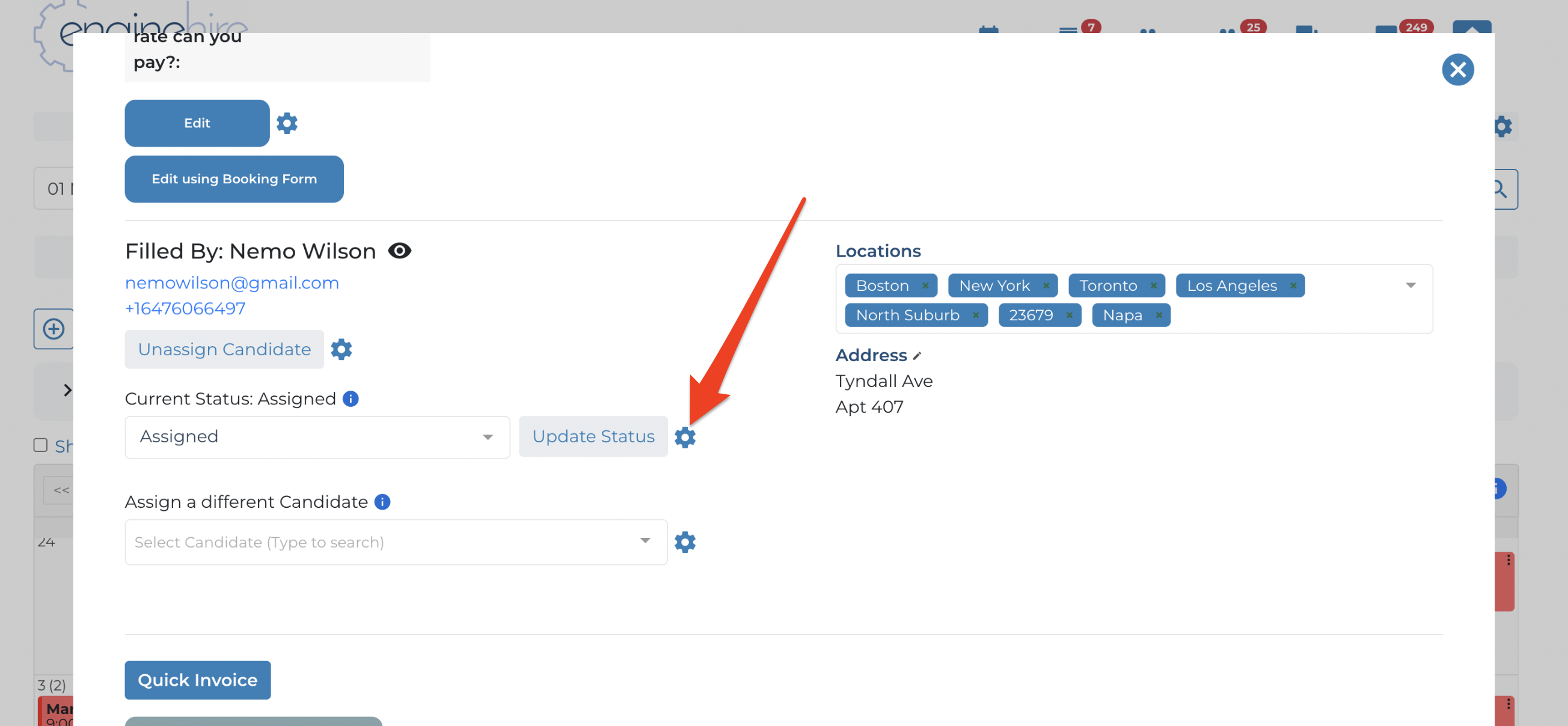 To customize the colors of shift jobs by status, click on any shift job in the shift job calendar, and click the gear icon next to the status selector: