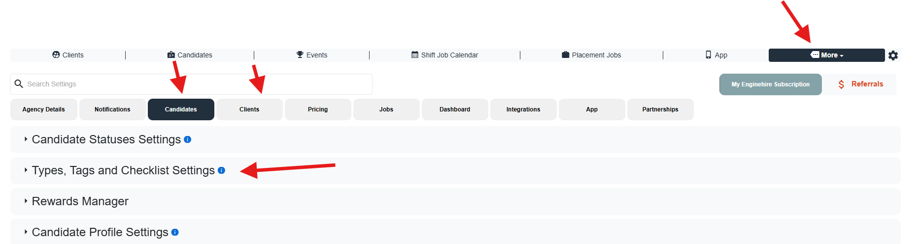 3. Select Candidates or Clients to update their Types, Tags, or Checklists. .