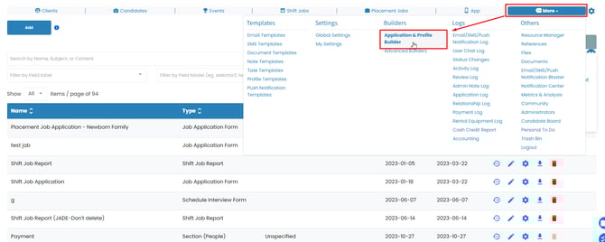 1. From Application and Profile Builder select the application you'd like to embed into your site.