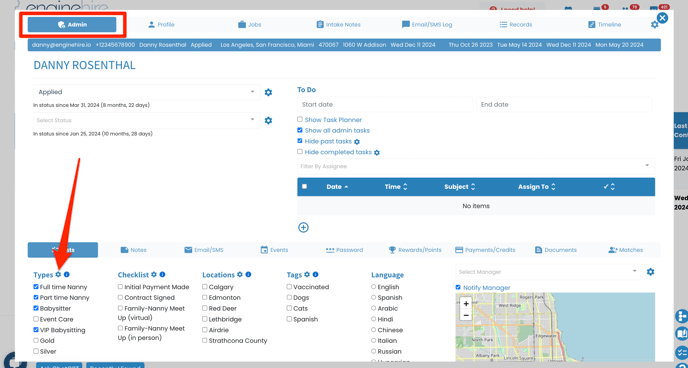 The first step you will want to take is adding the corporation as a client type. The way to do this is to click on any client, and click the icon next to the "Types" heading to edit it: