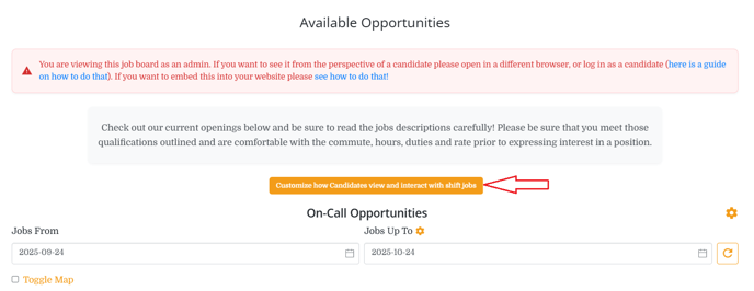 Step 3: Click on button "Customize how Candidates view and interact with shift jobs" - It will open settings popup window
