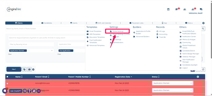 - Go to Global Settings.